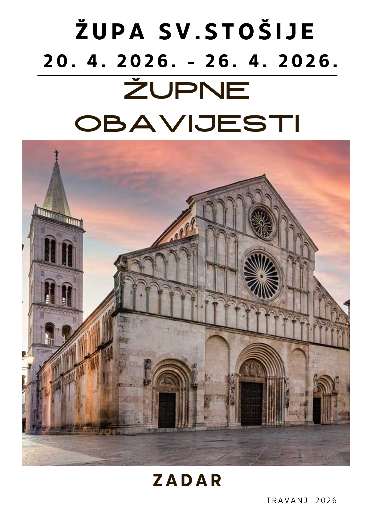 OBAVIJESTI ŽUPE SVETE STOŠIJE ZA TJEDAN OD 13. 4. 2026....